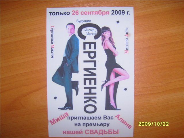 у меня тут друзья недавно поженились, приглашение на свадьбу было оригинальное.....
