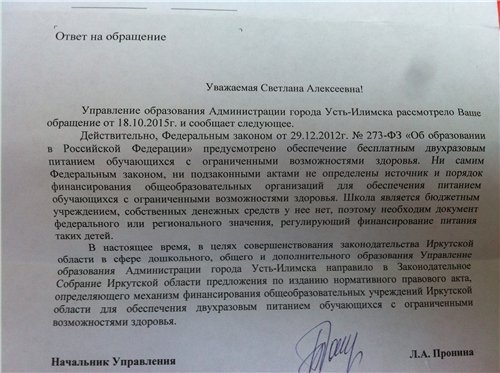 Цитата: maria081271 от 25 Ноября 2015, 10:55:41@julijuli, Юль а разве с инвалидность не положено бесплатное питание?Лена за компенсацию борется, а вы то в школу ходите.Нет, Маша, мы именно за питание боремся. Мы ходим в школу.