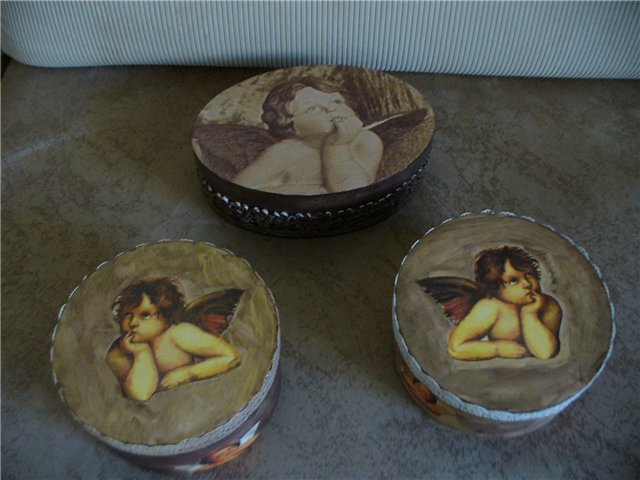 вы прям девчонки меня вдохновили....а то мне лениво последний месяц что то делать, хотя фабрику у себя на кухне разместила...все домашние уж привыкли, что пол-стола кухонного под декупажем - чем бы дитя не тешилось, лишь бы не плакало и 2 плоскости свободных рядом с кухней под декупажные штучки размещены - бардак развожу