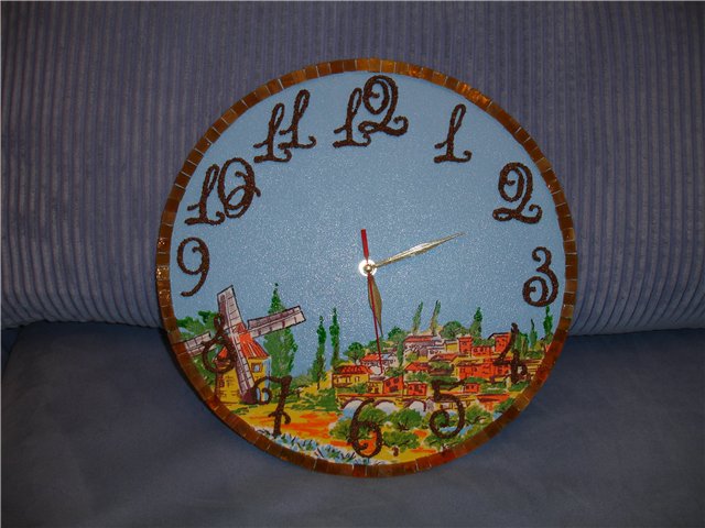 Вдохновилась вашими работами, девочки! Сделала часы на кухню.