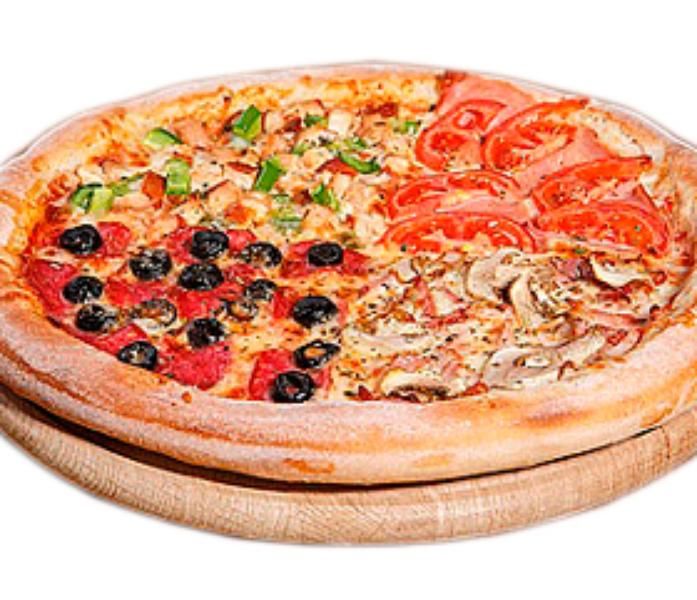 мне пожалуйста пиццу 4 сезона, апельсиновый сок со льдом и панна коту