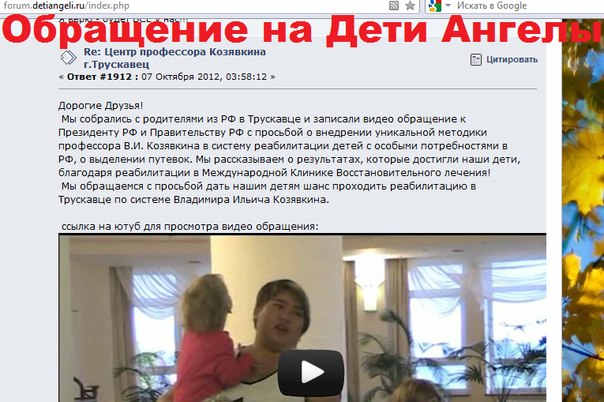 Она просто не знает как ребенка лечить? Вобщем то как и все мы!! Ищем и подбираем лечение своим детям сами!! Ищем неврологов, эпилептологов, остеопатов и прочих специалистов. То что предлагается в районных больницах (если вообще предлагается) как правило никого не устраивает!!! Ребенку нет еще 3 лет плюс глубокая умственная отсталость, их вообще ни в какой реабилитационный центр не направят. Вот она со своей больной психикой и тычется как слепой котенок. Еще бы ей у Козявкина не понравилось. С ребенком занимаются, он кому то нужен, вот она и едет туда!!!!Конечно