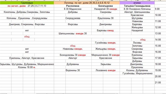 Я так поняла, что у кого рядом с фамилией стоит 30-то занятия по пол часа, а не число имелось ввиду.