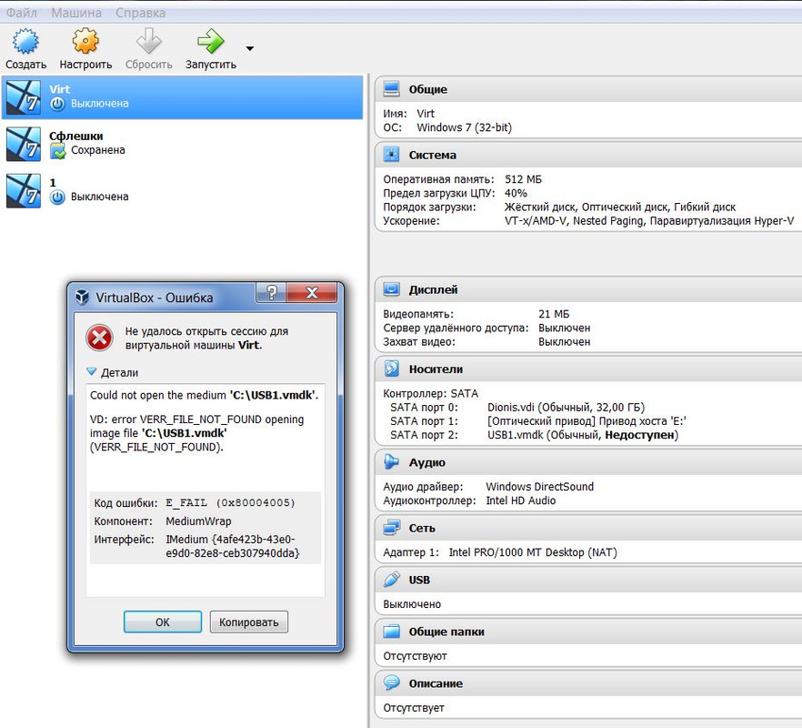 Цитата: Гуня от 28 Апреля 2020, 14:02:24Цитата: Оригинал от 28 Апреля 2020, 13:50:17Цитата: Гуня от 28 Апреля 2020, 13:43:26А работал вообще? У меня на худшем компьютере работает. Скорее всего надо включить vt-x в биос.У меня открывается, что-то я там успеваю сделать, значит, виртуалка в биосе включена. Потом, хоп, перестает отвечать и все тут!Так, стоп. Ты устанавливал что-нибудь в виртуалке? Запускал гостя хоть раз?Вот именно стоп! У меня там создано несколько машин и ни одна толком не работает. Гость - это какая-нибудь система, созданная в виртуалке? Если да, то запускал, см. выше.