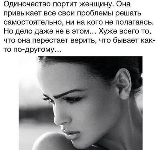 @Татьяна Я...а, спасибо, тем, кого встречала, как-то на мои особенности пофиг, хотя они за километр видны ))) не складывалось по другим причинам, от диагноза вот вообще не зависящим.Я не буду говорить, что найти пару может каждый человек из "нашего" контингента. Кому как везет. Но может, и не в особенностях дело. И колясочники находят, и люди с генетич. проблемами, у которых срок жизни и то диагнозом ограничен. Просто у кого-то есть это, у кого-то нет, зависит явно от чего-то свыше ))) но думать, что снимутся последствия диагноза внешне (как assonik думает) - и к ногам сразу рухнут толпы прекрасных дам - это фигня ))) и здоровых людей полно одиноких. От кругозора, ИМХО, тоже не особо-то зависит. Иначе откуда семьи у наших прапрапра..., которые и писАть-то умели не всегда, хорошо если пару классов заканчивали? Да и сейчас полно людей, которые не интересуются ничем и ни к чему не стремятся, вот не думаю, что все они будут по этой причине одиноки, найдут же себе кого-то в спутники жизни. Другое дело - с какими установками и ценностями своих детей воспитывать будут, если те появятся-таки. А картинка в тему, сама такая сейчас