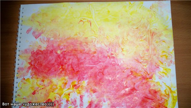 Девочки!!!!Еще Спасибо за подарки деткам!!!Буквально через день мы уже написали нашу первую картину )))))Я взяла смелость сама ее назвать))))Пришло в голву..."Бушующее пламя"..))))))И посвящяем ее девочкам Организаторам!!Алле,Марине,Юле и Саше))))).Что у вас внутри был огонечек!!!и он никогда не погас!!!Мы будем стараться его поддерживать своим теплом!!!!