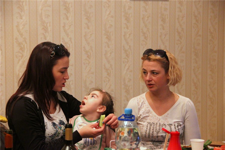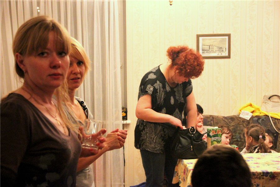 дочка Наташи Гогичаевой (мамы Платона)-ник Жаллочка, далее у дивана с дочкой Лизой Лена Стародубцева, над ними брюнетка Юля Ярушевская, на диване Ира Жданова ник МамаДаши, соответсвенно с Дашей :) на коленях и обнимает Лизу Ярушевскую, далее идет Вовчик Ирчика :) возле Марины Шахновской, у нее на коленях дочка Соня, далее я, возле меня Оля Спирина, мама Гели, за нами Катя Литвинова с Леонардом на руках. на переднем плане Стёпа, сын Наташи - ник elsy-fox - и наша бабочка-Сонечка!