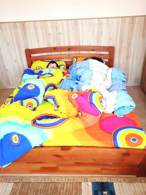 Всём отдыхающим, доброе морское утро! 🌊🌊🌊🌊🌊🌊🌊Уснули вчера очень быстро, дети спят опять на одной кровати вместе, сначала Валера хотел моё кресло кровать занять, потом передумал, легли всё по своим местам, как в прошлый раз. Живём рядом с военным аэродромом, поэтому даже звуки наших летающих железных птиц не стали причиной бессонницы. Воздух здесь усыпляющий, обалденный. Сейчас пью во дворике кофе, смотрю на молодую, красивую зелень, голубое небо без облаков, ветра нет, фонтанчик за спиной успокаивающе журчит, птички поют, дети ещё спят! Ляпотаааа! Бельё сейчас достирается, повешу, пойду их будить! Завтракаем и на пляж 🌊☀. Сегодня отдыхаем рядом с домом!
