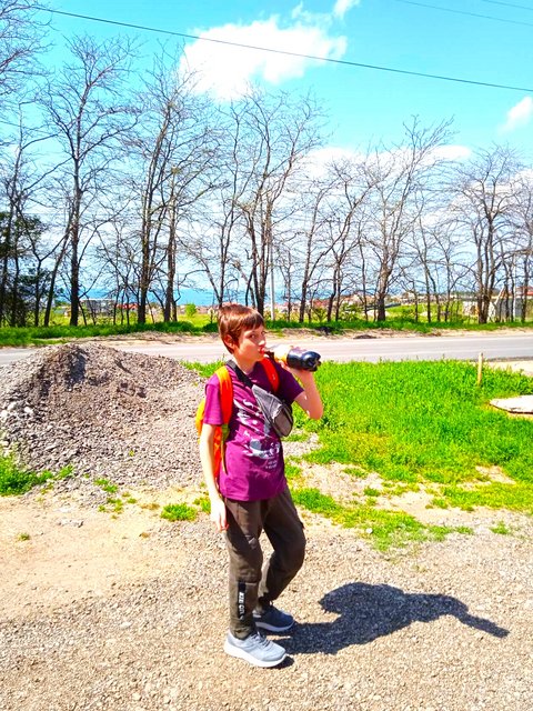 Домой топаем, с колой не расстается!)