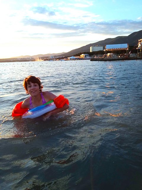 Потом побежали на обед через любимый пляж!Наконец то узнали его название!)На пандусе встретил работник пляжа и радостно сообщил нам, что для нас лежаки бесплатно.Я конечно уже давно знала об этом, но сделала вид , что впервые слышу!)Море сегодня просто чудо было, с большим усилием вытащили себя из него!Опоздали на обед на 7 минут.