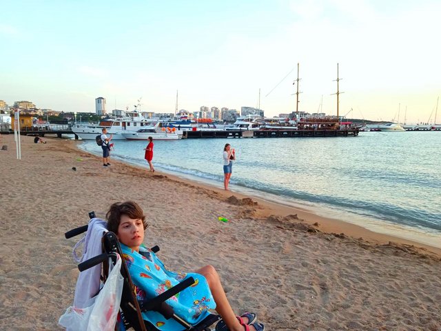 Сегодня море, в той части, где наш любимый пляж, не совсем чистое. Приплыли иголки сосновые, много прям и медузы, этих поменьше, чем иголок!Так что у нас лечебные солено- хвойно ванны!)