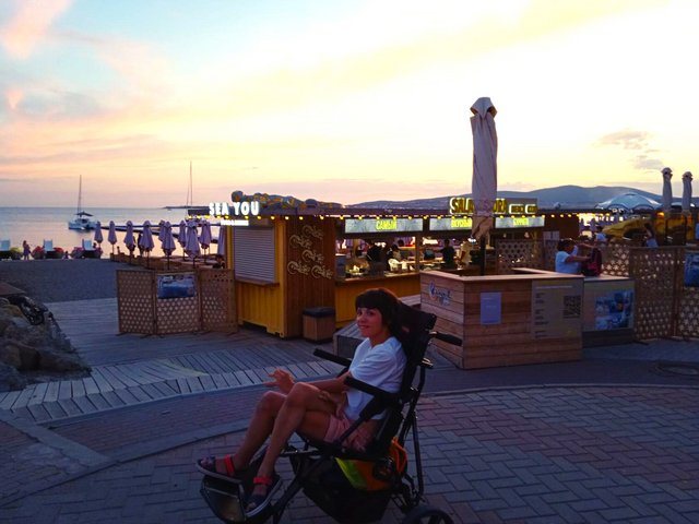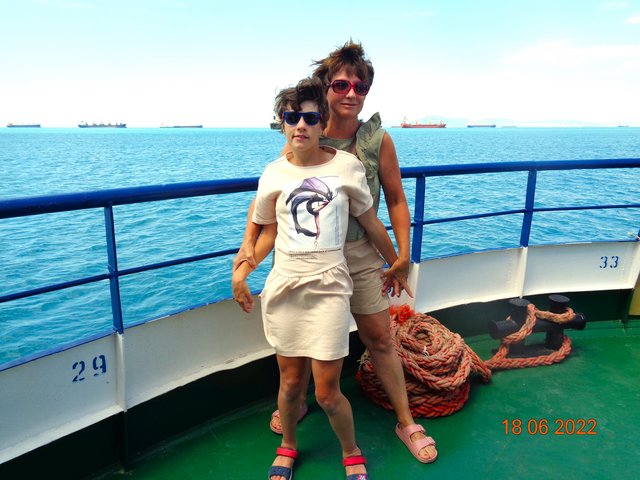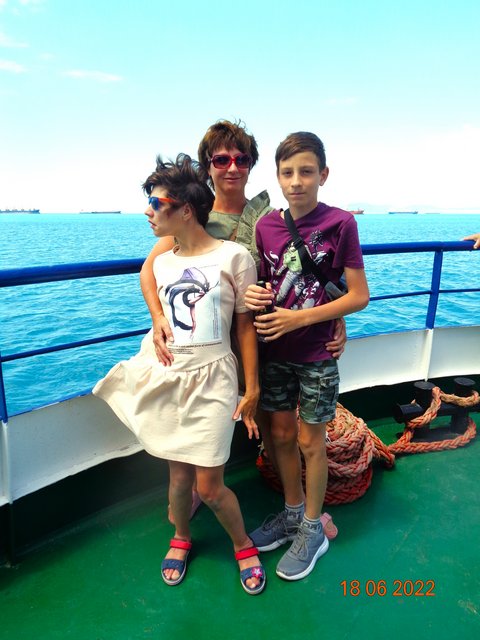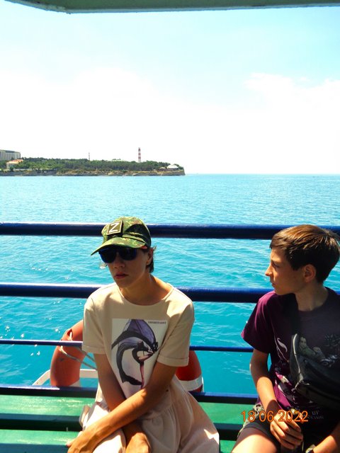 Валерка ещё дельфинов видел, прям стаю рядом с теплоходом, мы в это время с Марго в туалет ходили, пропустили. Я искупалась таки в открытом море, какое оно там чистое и цвет не обыкновенный. Дети не купались, там спуск в воду не для Марго, Валерка тоже не захотел жилет надевать, а без него детей до 14 лет в воду не пускают. Фотки прогулки вечером загружу, пойду сейчас на санаторский пляж поплаваю, пока дети отдыхают в номере после вкусного обеда!