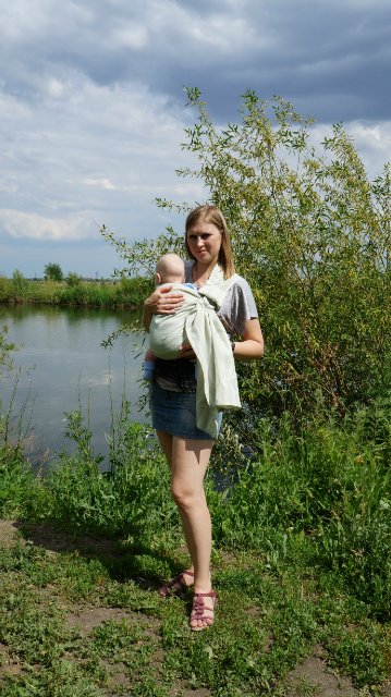 Вертикальное положение разрешено с рождения, но вот борт должен быть подтянут. Слинг должен поддерживать спинку ребенка по всей высоте, а так получается больше нагрузка на позвоночник. Надо у девочек спросить, что с шилопопами делать? А если ручки на верх, а так затянуть