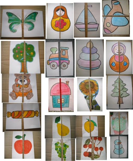 А это наши первые пазлы.Как сына освоит разрежу картинки на 3 части,а потом на четыре