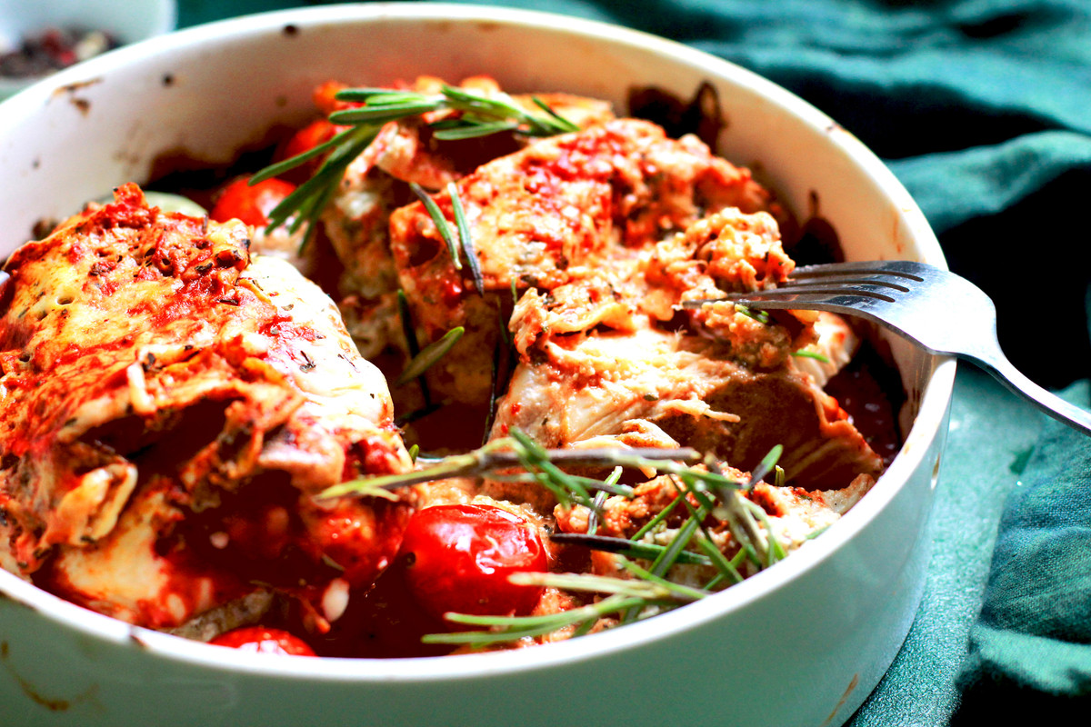 Курица, фаршированная рикоттой, с маринарой в итальянском стиле