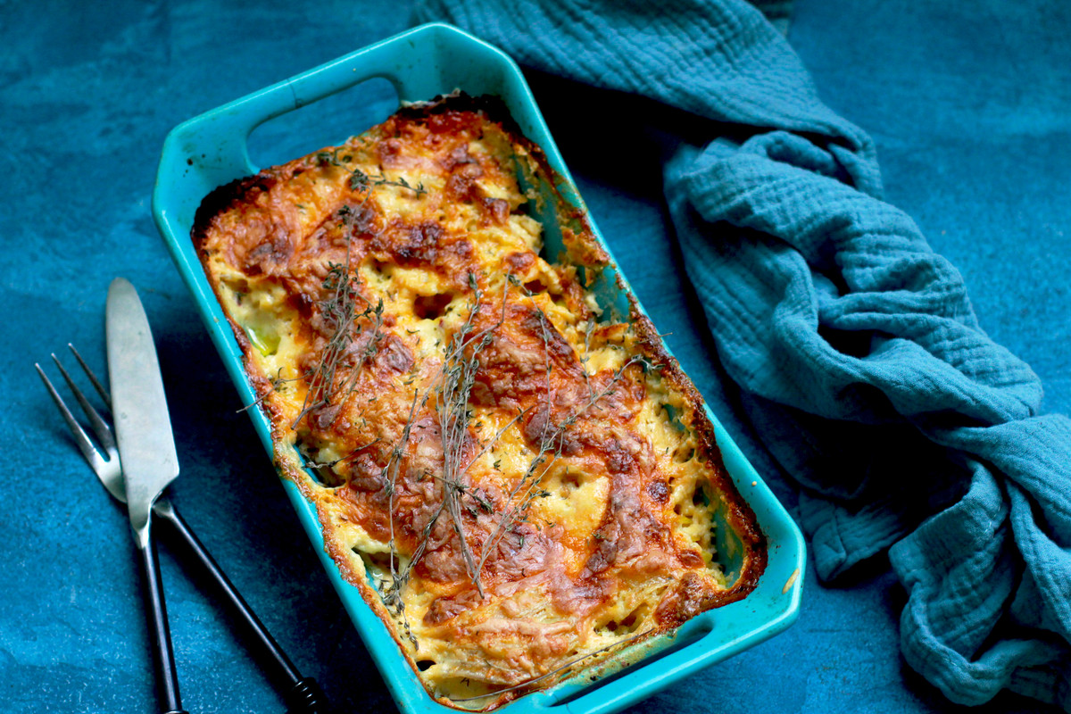 Слоеная сырная запеканка с фаршем