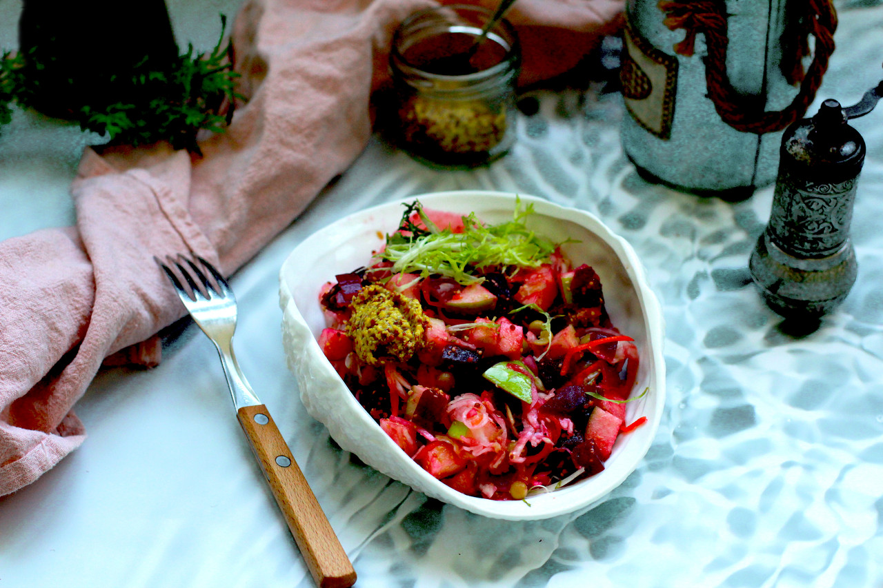 Салат по типу винегрета, без картошки, с яблоком