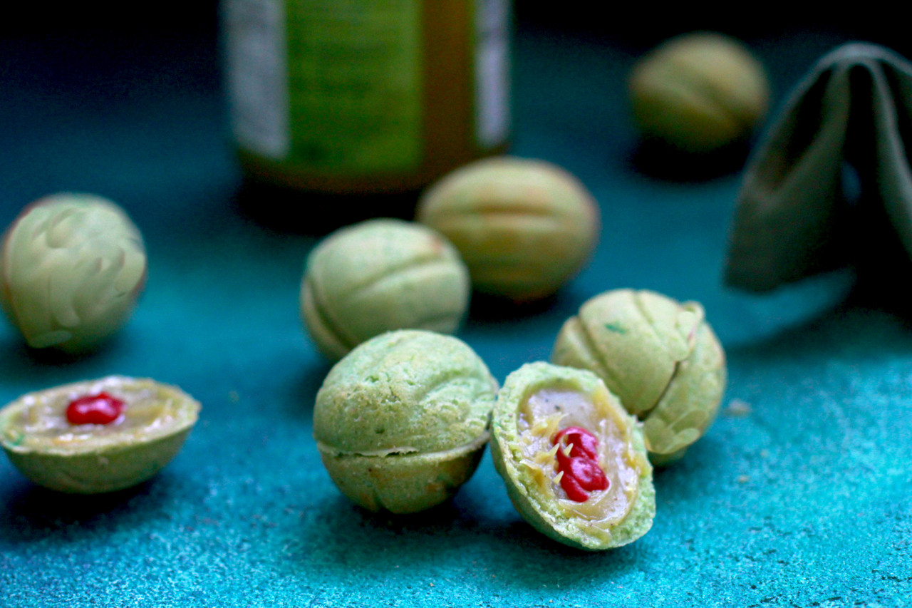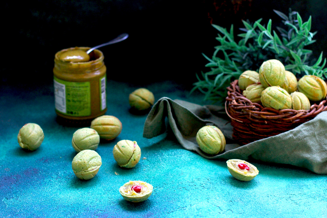 Фисташковые орешки с фисташковым ганашом и малиновым кремю
