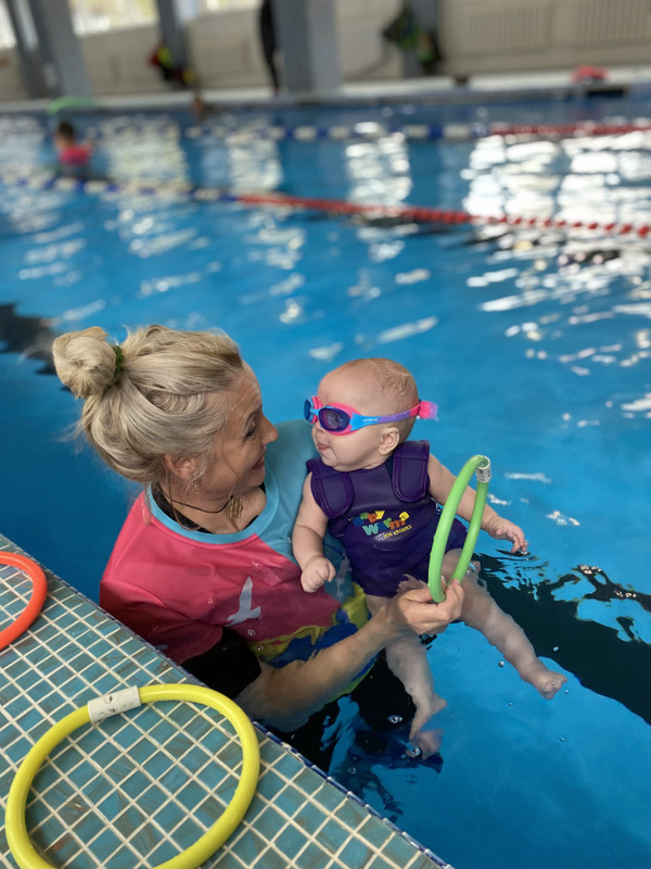 Мы приехали в Сосны реабилитировать старшую дочь, а младшую (6 месяцев) для общего развития решили поводить в бассейн, попали к Инге 🥰.