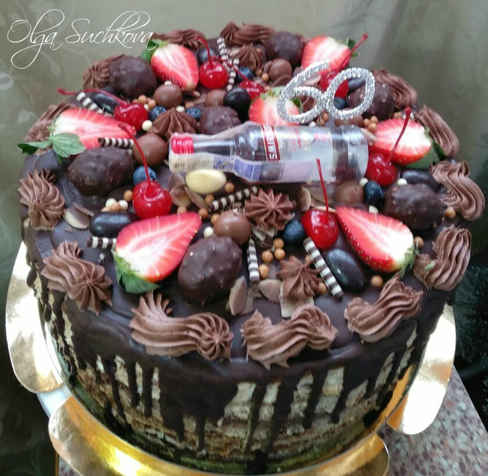 Водку на торте первый раз вижу, наши кулинарши обычно коньяк кладут)