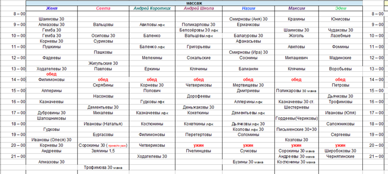 Вика, спасибо за расписание и труд. Но жаль, что нам массаж и логопеда сократили до 30 мин... Хотя заявку я присылала в числе первых. Надеюсь к Мазальскому нас не забыли. Алмазовы