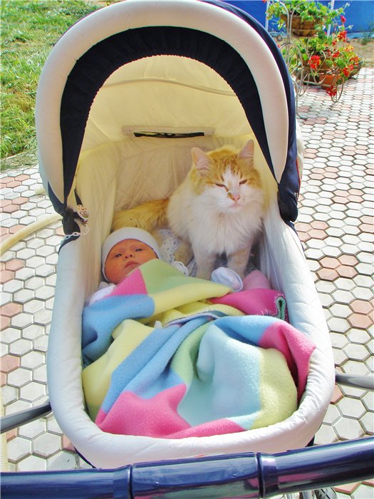 @Катенька-Сорока, Кать, рыжий котик уже старый в коляске. Это он со средним сыночком?