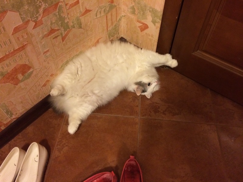 И встречает дома нас, как собака. Приходим с Лильком из школы, подбегает к двери, громко мяучит и лапами на меня становится, чтобы погладить ее или на руки взять.