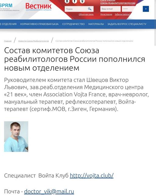 Наш заведующий Швецов Виктор Львович возглавил комитет по войта-терапии в составе Союза реабилитологов России!!!