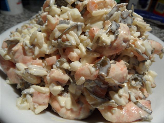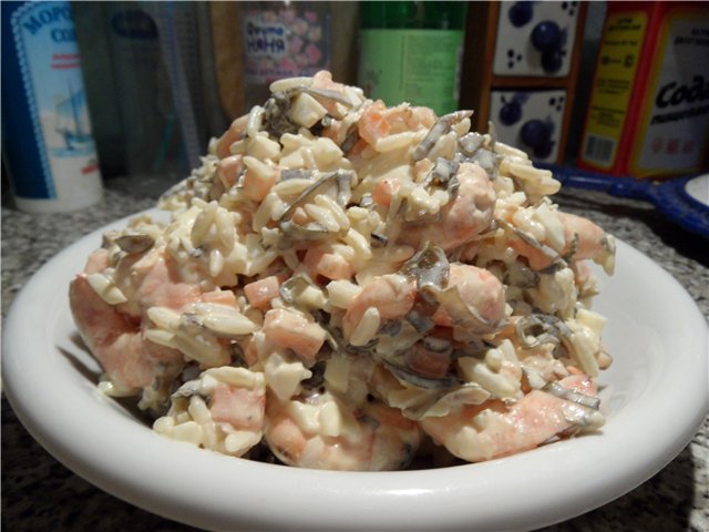 В оригинале вместо крабовых палочек отварные креветки, но я их боюсь (они у меня ассоцируются с гусиницей).
