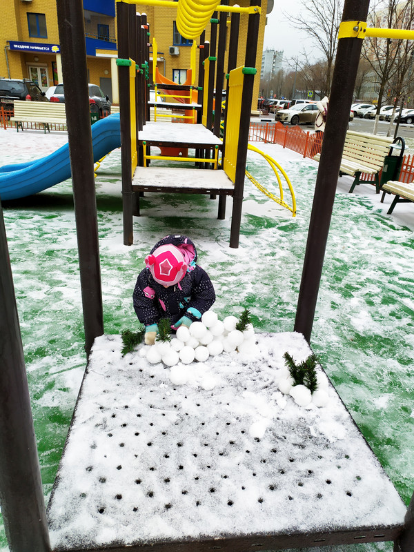 А в Реутове снег был. Мы его наскребли даже на снежки 😁