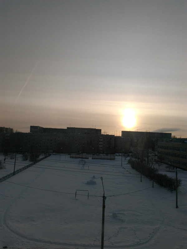 Снег вчера шёл. Вполне новогоднее. Но пасмурно.