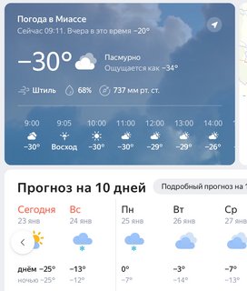 Ну вот пока минус 22, в ближайшие сутки до минус 29 ожидается, а уже 23 января плюс 2 и дожди!