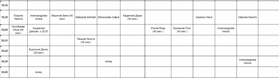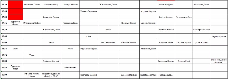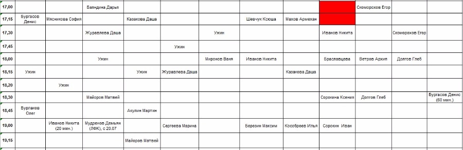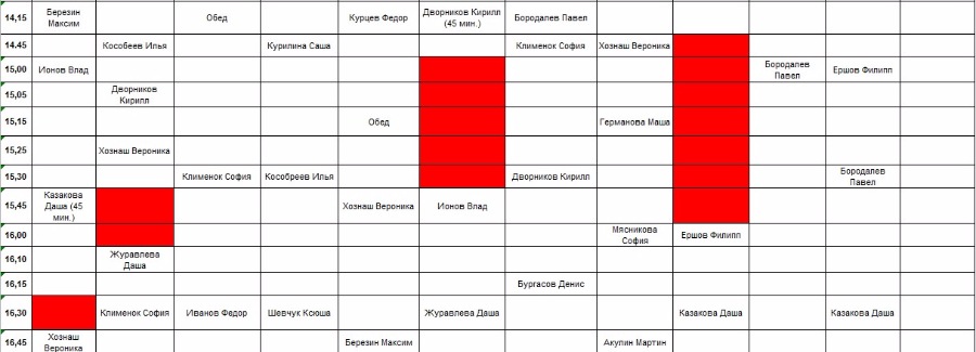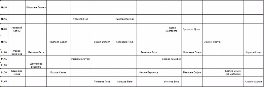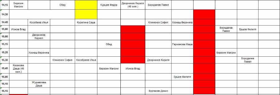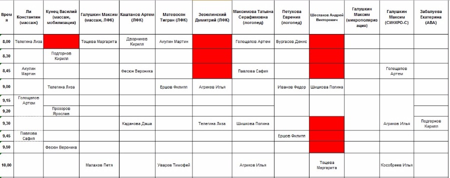 @Катеринка87, у вас получается с 14-14,30 восточка, 14,45-15,15 - логопед, 15,25-16,10 -Василий, 16,45 - 17,45 ЛФК