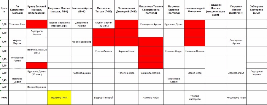 @Zhurochka83, Таня, вижу как вы старались, но нам нужно разбить лфк и массаж перерывом хотя бы 30 мин или поставить массаж перед лфк. Вероника еще МАЛЕНЬКАЯ, для нее тяжело подряд три занятия. Переживаю как она будет в таком ритме две недели. Что если нас поменять с Березиным Максимом? Хознаш 13:15 восточная медицина, 14:15 массаж, 16:45 лфк. Березин 15:45 лфк, 16:45 массаж.