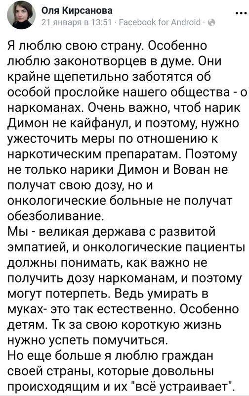 Цитата: Татьяна Я...а от 29 Марта 2019, 18:22:23@Златовласкин, возможно, не скоро это будет, возможно, мы не доживем в этой жизни до этого, но такое время когда-нибудь наступит... Я верю, что Россия возродится. Духовно. Никогда не наступит такого времени.Лично я не верю !