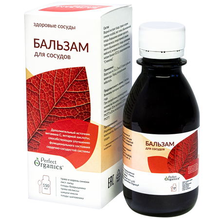 БАЛЬЗАМДля сердца и сосудовФорма выпуска: флакон, сироп - 150 млРег.№ декларации о соответствии: KZ.16.01.97.004.E.005198.11.15875₽1875₽ В корзинуОПИСАНИЕСпециализированный продукт диетического, лечебного и профилактического питания, рекомендуемый в качестве дополнительного источника витамина С, янтарной кислоты, способствующий улучшению функционального состояния сердечно-сосудистой системы.Биологически активные вещества, входящие в состав бальзама, улучшают энергетический обмен и функции артериальных, венозных сосудов и сердца, разжижают кровь, нормализуют артериальное давление (АД), сон, оказывают успокаивающее действие.По данным профессора Е. Е. Лесиовской: В экспериментальных условиях доказано восстановление и поддержание нормального уровня АД, ангиопротекторное и антиагрегантное действие. В клинических условиях при регулярном приеме бальзама стабилизировался уровень АД и сердечный ритм, нормализовался сон, уменьшались тревожность и раздражительность, нормализовались уровни тромбоцитов и МНО.СОСТАВ НА 1 ФЛАКОН:экстракт травы и корня синюхи;экстракт листьев липы;экстракт плодов боярышника;экстракт травы мелиссы;экстракт шишок хмеля;экстракт плодов шиповника;витамин С;янтарная кислота;натрия бензоат;экстракт стевии;натуральный заменитель сахара «Стевиозид».ОПИСАНИЕ КОМПОНЕНТОВ:Трава и корни синюхи голубой – редко используемое в современной фитотерапии растение, выращивалось в СССР в промышленных масштабах и входило в советскую фармакопею. Применяют для предотвращения развития сердечно-сосудистых заболеваний, для понижения уровня холестерина, для снятия спазмов сосудов, вегето-сосудистой дистонии, улучшения мозгового кровообращения, устранения шума в голове и головных болей, повышения стрессоустойчивости и работоспособности. По своему противотревожному действию – существенно превосходит такое известное растение как валериана. Растение возделывается компанией Perfect Organics для нужд собственного производства.Лист липы, плоды, листья и цветки боярышника – избирательно действует на коронарные сосуды и сосуды головного мозга, обладает гипотензивным и спазмолитическим действием, используется в качестве антиатеросклеротического средства. Укрепляются стенки коронарных сосудов, улучшается кровоток, нормализуется сердечный ритм, а также прием препаратов на основе боярышника снижает уровень холестерина в крови, снимает умственную и физическую усталость. Препараты боярышника успокаивают центральную нервную систему, нормализуют давление, улучшают кровообращение в сосудах сердца и мозга. Лист липы дает при экстракции спектр биофлавоноидов, имеющих выраженные антигипоксические свойства, повышает переносимость клетками жизненно важных органов кислородного голодания, что особенно важно при ИБС (ишемической болезни сердца). Экстракт листьев липы глубоко изучался в СПХФА.Трава мелиссы – в составе «Бальзама для сосудов» мелисса – один из важнейших компонентов. Благодаря особым эфирным маслам, содержащимся в этом растении, может быть снят практически весь спектр симпатических симптомов ВСД - от легкого дискомфорта в груди до тяжелейших головных болей.Шишки хмеля – кроме превращения солода в пиво, хмель хорошо известен как успокаивающее, обезболивающее и спазмолитическое средство. Особенно он эффективен пр