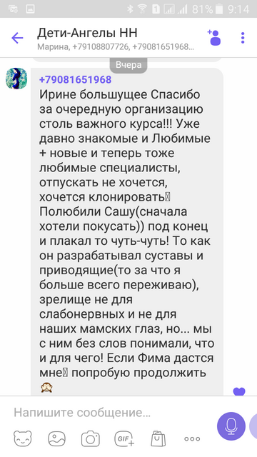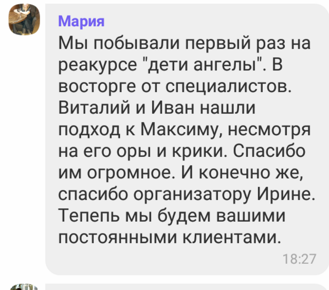 Вот закончился уже 5 для нас курс ДА! Огромнейшее спасибо всем специалистам за их профессионализм и отношение к нашим детям, да и к нам родителям! Мы как большая семья, где есть место поддержке, шуткам и играм) Всегда рады встрече и с удовольствием идём к каждому специалисту! Александра Шевякова можно сравнить с Терминатором, который никогда не устаёт трудиться, а с детьми он общается, как с родными. Каждая минута на его занятиях заполнена, каждое упражнение он объясняет для чего и к чему! Ещё большой плюс, что Александр и Иван (салинг) работали в одном зале. У них получился настоящий тандем в работе с детьми, они советовались по каждому ребёнку, какие мышцы надо прорабатывать, на что больше внимания уделять. Получился такой комплексный подход! Сама процедура Салинг, конечно, нравится всем детям: попрыгать, полетать, побывать в невесомости! Я с каждым разом замечаю, что дети стали лучше приземлятся, мягче вставать на стопы. И конечно, в этом зале всегда есть место для игр (благо мячи под рукой) и общения! Андрей Шестаков - это просто космос! Мои дети называют его магом и волшебником! На самом деле, даже я , просто находясь рядом, попадаю под влияние музыки, запахов, расслабляет по полной! Кроме этой атмосферы, его процедуры очень действенные, очищают, нормализуется туалет у детей, прилив энергии. Андрей всегда интересуется, как дела, если дети приболели и в нос своими средствами закапает и мазью намажет. В этот раз сама разболелась к концу курса, так и меня подлечил, очень приятно такая забота