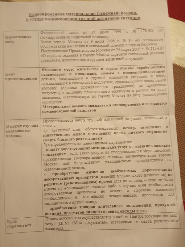 Цитата: Oksana123 от 09 Октября 2019, 16:58:25@Севилья, это не льгота. Это просто поддержка семей, оказавшихся в трудной жизненной ситуации. Чеки в основном подают на ремонт квартиры, покупку мебели, ну и т.д. только не на одежду, еду и быт. Технику.Приносите пакет доков. Чеки.Пишите заявление. Приходит комиссия. После выносят решение. Компенсируют расходы но не полную стоимость, а какую то часть. Мне компенсацию с коляски в 50 тыс. (не особую) вернули 10Можно чеки и на одежду,и на еду. Недавно была в МФЦ т мне дали памятку. Зачем придумывать?И ещё так долго ржала про квартиру 62 кв.м. у МКАДа за 14-15 млн )))) это полный бред)