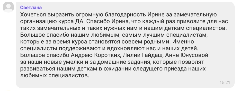 от работы наших специалистов! Поверьте -это очень ценно и для меня , и для тех, кто работает с нашими детками! Всегда ценим, помним , перечитываем ваши отзывы!