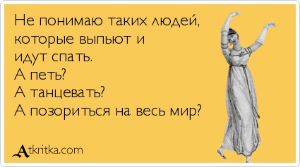 Мы недели 2 назад с подругой и сестрой встретились,как мы думали, поболтать, немного вина выпить, ага, такое устроили, что некоторым потом стыдно было, начали с приличных танцев, а закончили на столе и чуть ли не стриптизом,если что, это не я была))) зато вспомнить есть что и над чем поржать