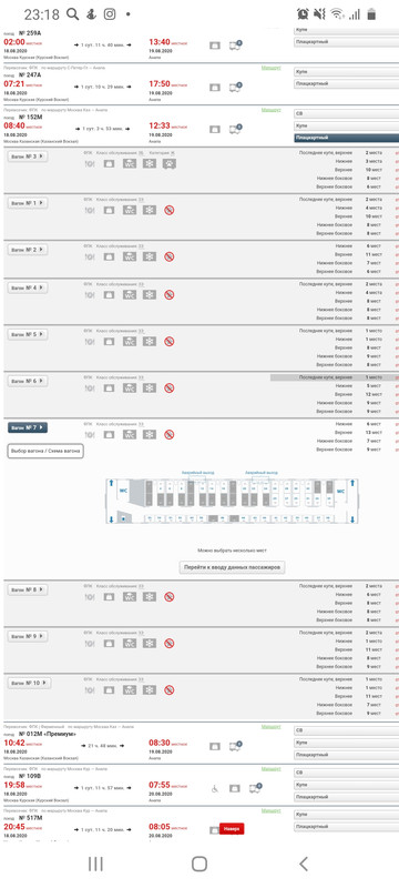 Мест в 7м вагоне еще полно, серым цветом - выкуплены