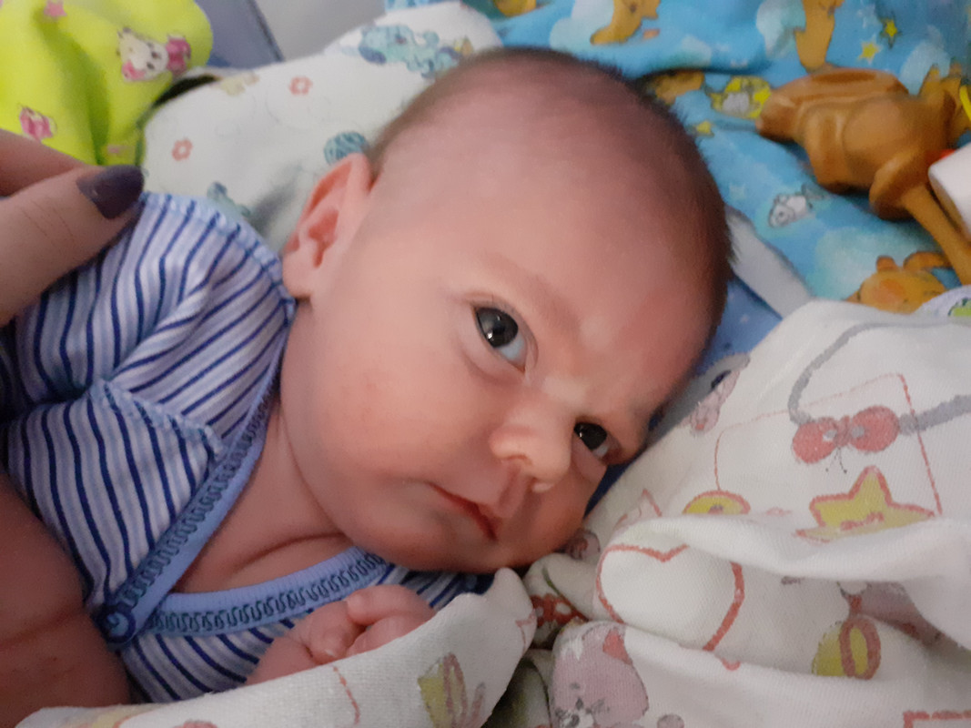 Последний осмотр невролога 2 дня назад: двигательная активность незначительно снижена. Ог 37.5 (+2.5 с момента рождения), Швы закрыты, большой родничок нормотоничен. Сухожильные рефлексы в норме, нистагма нет, лицо симметричное. Тонус снижен в проксимальных отделах конечностей, в дистальных несколько повышен. Рефлекс Бабинского периодически спонтанный. Высокий рефлекс Моро. Снижен рефлекс автоматической ходьбы.