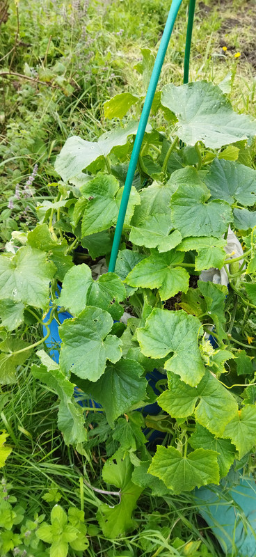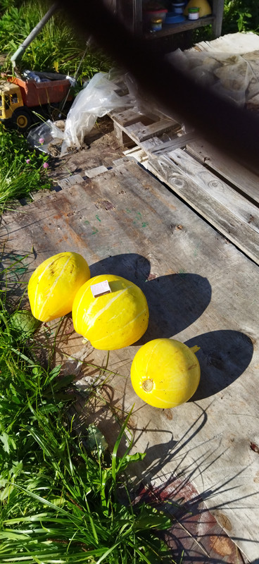 Тыкву пришлось одну снять, перекрутилась и полуотломленная плодоножка у нее, подгнивать начало, убрала. Тыквы нынче практически нет ☹️ эта небольшая и штуки 4 еще меньше другого сорта.