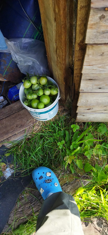 . Кусты их убрала все, гниют, завязь отпадает. Огурцы пока оставила плети, хоть желтеют уж, на погрызть еще несколько штук вырастет. Они почти не завязываются тоже, но много было завязи по теплу, и что то нарастает, хоть и отпадает много. Тоже на банку 0.7 замариновать и поесть собралось.