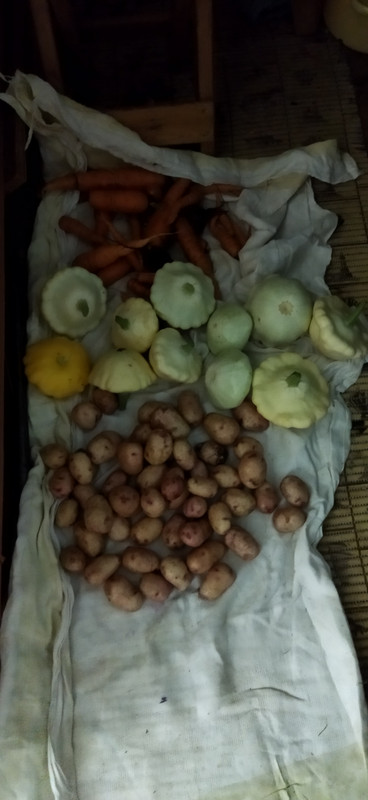 У нас этот года "яблочный". Через год плодоносит, так что остальной урожай на фоне яблок теряется. В целом выросло не так уж мало. Провал только с луком - мелкий, с цветной капустой и горохом(для детей сажается и съедается прям с грядки), но там возможно семена виноваты. Мало было клубники, часть под заморозки попало. Так же не было вишни/черешни. Остальное по некоторым позициям задержалось, перцы, например все еще зеленые. Картошку у себя не сажаем, она на нашем болоте плохо растетрастет вне зависимости от погоды.