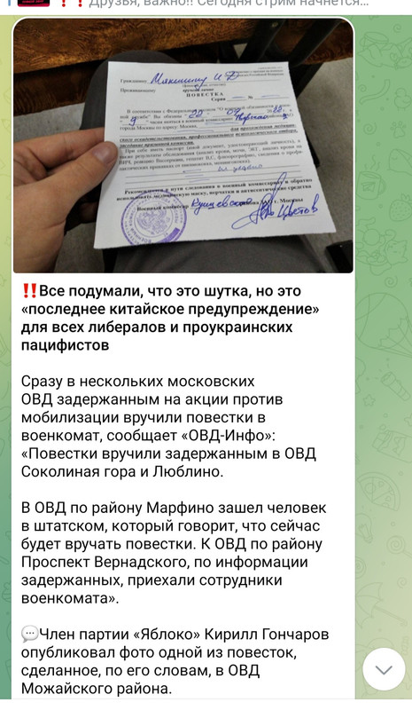 Цитата: Жанетта от 22 Сентября 2022, 08:30:42Что за шабаш вчера в Питере был? Посмотрела я на лица этих людей,не русские они, до клеточки пропитанные западной идеологией. Согласна с одним из комментаторов:" Отправить задержанных к Вагнеровцам. Они их быстро научат Родину любить."Сперва,на недельку ,на Петровку в Донецк. Зажрались от сытой жизни. Уже отправляют)