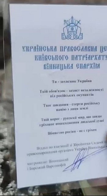 Стереть российскую нацию с лица земли, призывает украинская православная церковь боевиков в окопах.Эта листовка была найдена в бахмутских окопах, выкопанных прямо в черте города - уже после зачистки. Все, кому было адресовано написанное - погибли. Бог не на вашей стороне, свидомые.