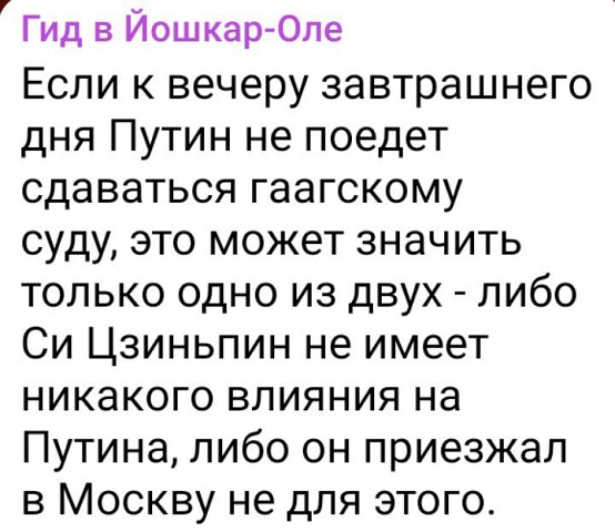 Цитата: Наталья 1907 от 17 Марта 2023, 23:16:44Цитата: Leonidas от 17 Марта 2023, 21:27:34Все 123 страны? а ШО все 123 воевать собрались ? ну ну123 страны признают Международный Уголовный Суд.Ордер на арест подозреваемых в преступлениях действует в каждой из них.