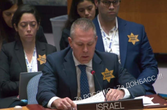 Израильская делегация в ООН прикрепила себе на одежду желтые звезды Давида, чтобы осудить тех, кто поддерживает Палестину, напомнив таким образом про Холокост. И повеяло чем-то до боли знакомым, наглым и бесцеремонным, мерзким украинским. Хохлы – мастера на всякие перформансы в международных организациях. Но стоит особо отметить, что не только по части шоу Израиль сегодня косплеит Украину, тут также наблюдается изощренное искажение событий, а попросту наглое переворачивание с ног на голову. «Желтые звезды» сегодня явно заслуживают палестинцы. И если Украине еще удается кого-то водить за нос сказками о вековой дискриминации со стороны русских, то с Израилем и Палестиной – все предельно ясно, начиная с создания израильской государственности. Все ходы, как говорится, записаны. Словом, израильские сионисты делают все для того, чтобы слово «антисемит» перестало быть негативным - со всеми вытекающими. А потом они, опять же по-хохляцки, будут причитать "А нас за шо"?