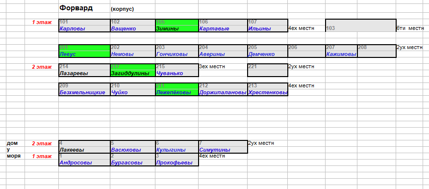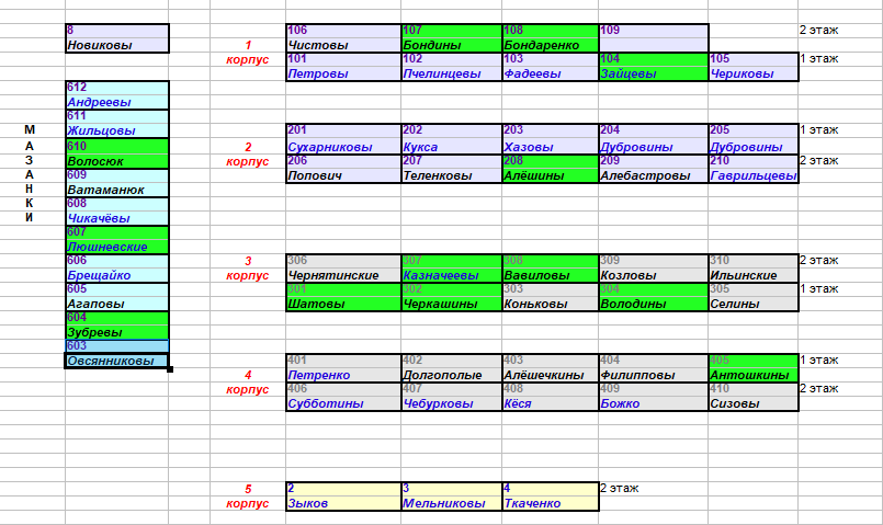 Итак, новая схема расселения (зеленым отмечаю тех, кто внес предоплату)